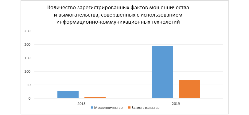 Активное использование мессенджеров, социальных сетей, электронных кошельков различных платежных систем обусловило рост числа иных преступлений, при совершении которых используются информационно-коммуникационные технологии. Например, количество зарегистрированных фактов мошенничества с использованием информационно-коммуникационных технологии выросло в 2019 году в 7 раз, а вымогательства – в 17 раз, при этом тенденции роста отмечены и в текущем году.