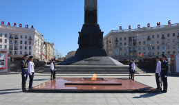 Сегодня у монумента Победы состоялась торжественная церемония возложения