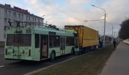 В Минске троллейбус врезался в фуру. Следователи работают на месте происшествия