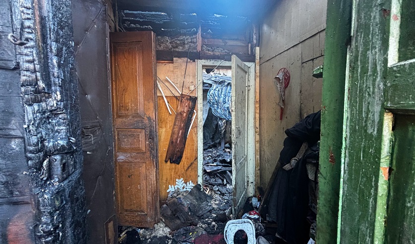 Деревянная часть жилища была объята огнем, и, к счастью, в этот момент