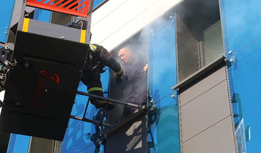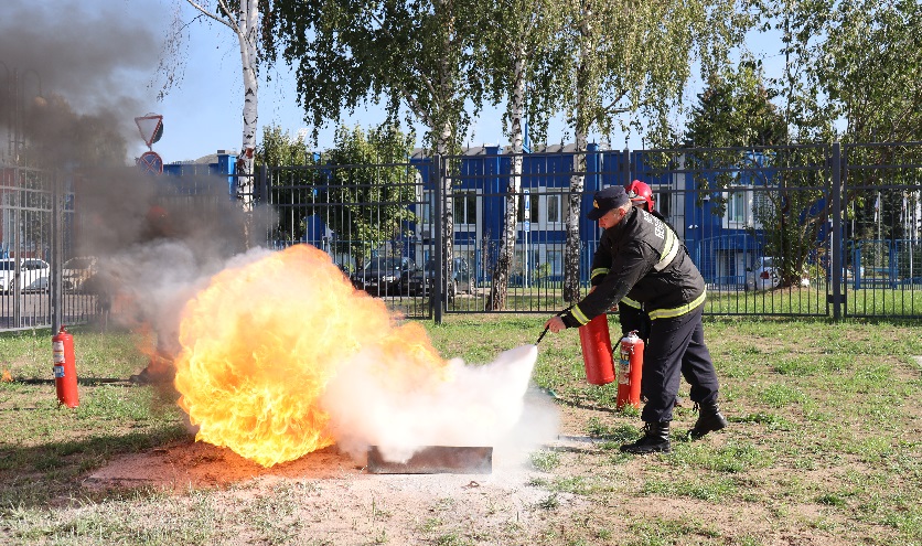 Представители МЧС продемонстрировали различные способы спасения граждан из многоэтажного здания: использовались автоподъемник, «куб жизни» – специальная пневматическая подушка безопасности. Кроме того, спасатели напомнили сотрудникам УСК правила пользования огнетушителями и предоставили каждому желающему возможность попрактиковались в тушении пожара.