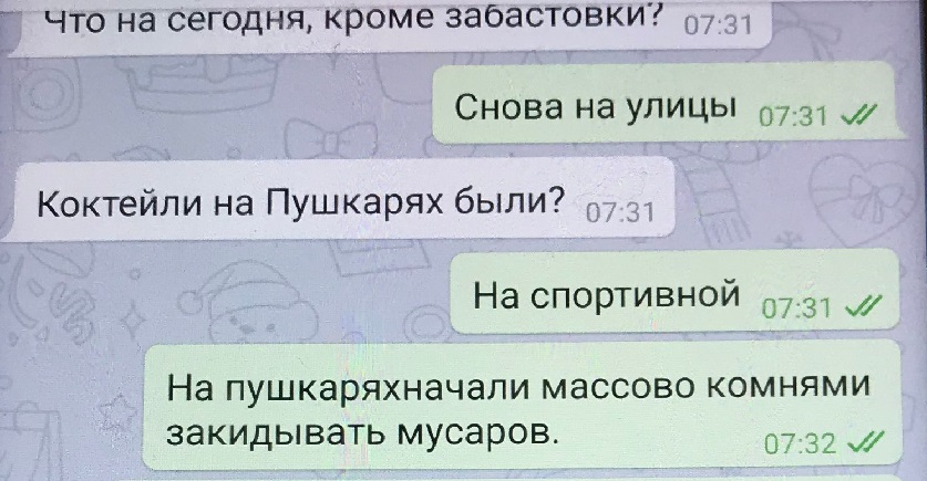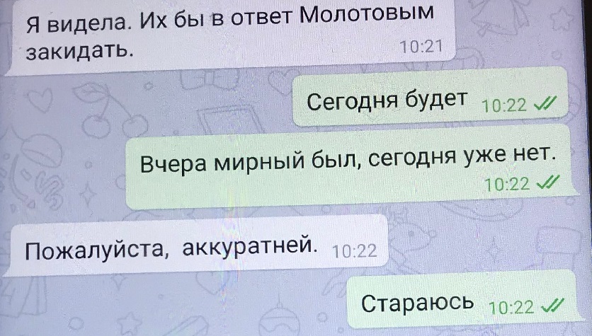 Кроме этого, следствием установлены иные эпизоды противоправной деятельности двух обвиняемых. Как сообщалось ранее, УСК по городу Минску завершено расследование уголовного дела в отношении 32-летнего гражданина Украины, который с целью ведения радикальной деятельности создал в мессенджере Telegram чат. Реализуя свой преступный умысел по порче имущества в общественных местах действующие фигуранты вступили в указанный чат для совместного совершения противоправных действий. После чего мужчины приняли участие в нанесении на фасады зданий и иные объекты коммунальной собственности, расположенные во Фрунзенском районе столицы, надписей и изображений протестного характера.