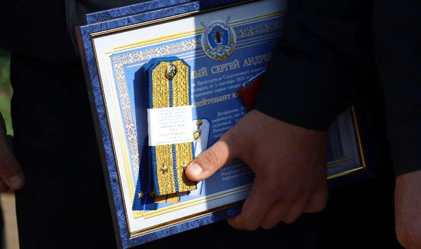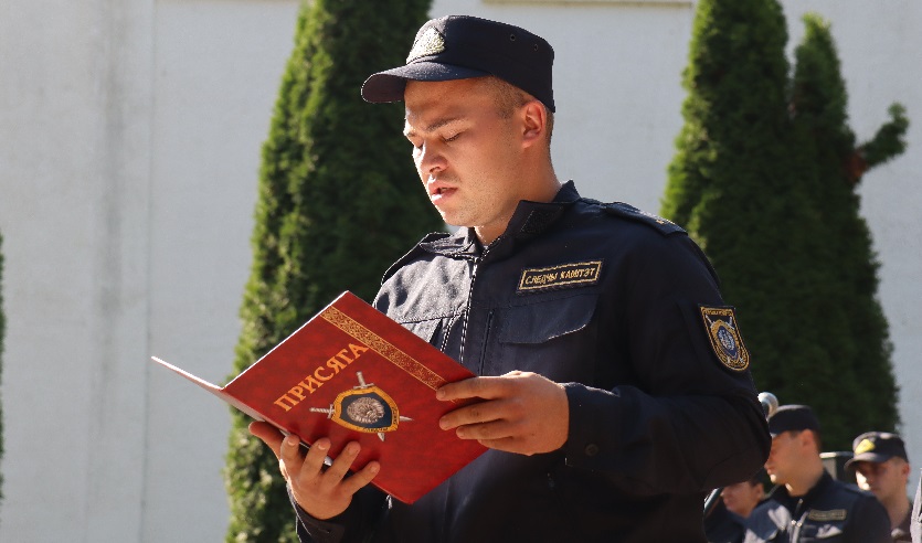 В торжественной обстановке начальник управления вручил удостоверения и символичные наказы вновь принятым на службу следователям. Некоторые из участников сбора принесли Присягу на верность народу и государству.