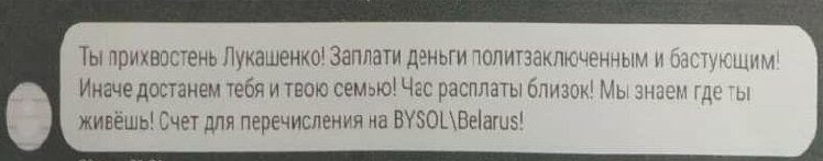 В августе текущего года директору одной из столичных турфирм пришло смс-сообщение от неизвестных с требованием перечислить деньги «политзаключенным и бастующим» под угрозой применения насилия в отношении него и его близких родственников. Изначально 29-летний мужчина не придал этому значения, но спустя время похожее сообщение поступило вновь, и он обратился в милицию.
