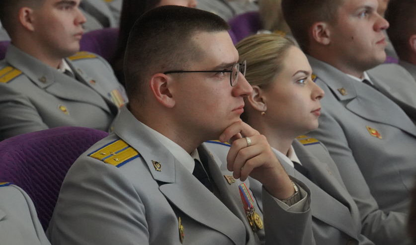 В зале присутствовали представители правоохранительных органов Минска, курсанты следственно-экспертного факультета Академии МВД, студенты вузов, обучающиеся по целевому направлению ведомства, ученики правовых классов средней школы № 204.