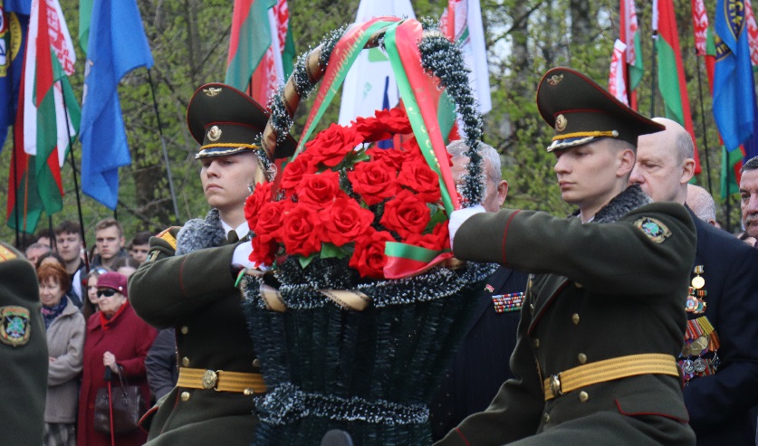 Столичная делегация в составе руководства Мингорисполкома, Мингорсовета, правоохранительных органов столицы и начальника УСК по городу Минску Евгения Архиреева возложила цветы к памятным знакам «Ахвярам Чарнобыля» и «Камню мира Хиросимы», отдав дань памяти жертвам и ликвидаторам последствий аварии.