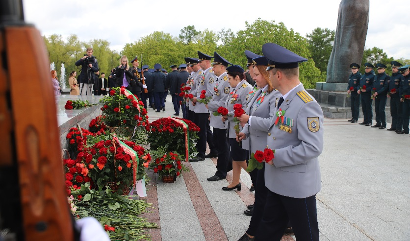 Сегодня, в канун 9 мая, у подножия 45-метровой стелы на проспекте Победителей начальник управления Евгений Архиреев вместе с личным составом возложил цветы к мемориалу. Минутой молчания представители столичного следствия почтили память всех, кто воевал за свободу и независимость нашей Родины.