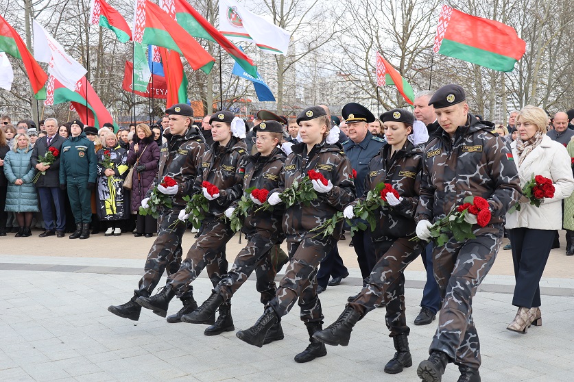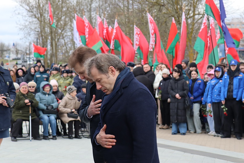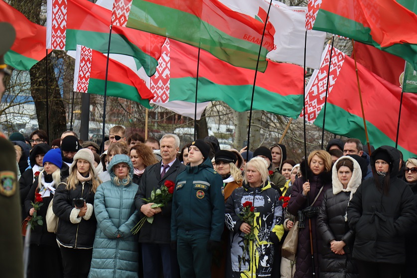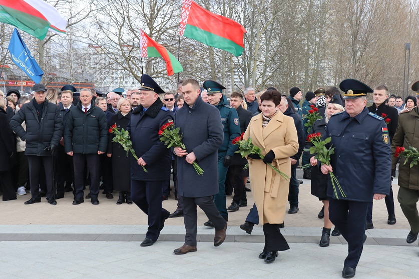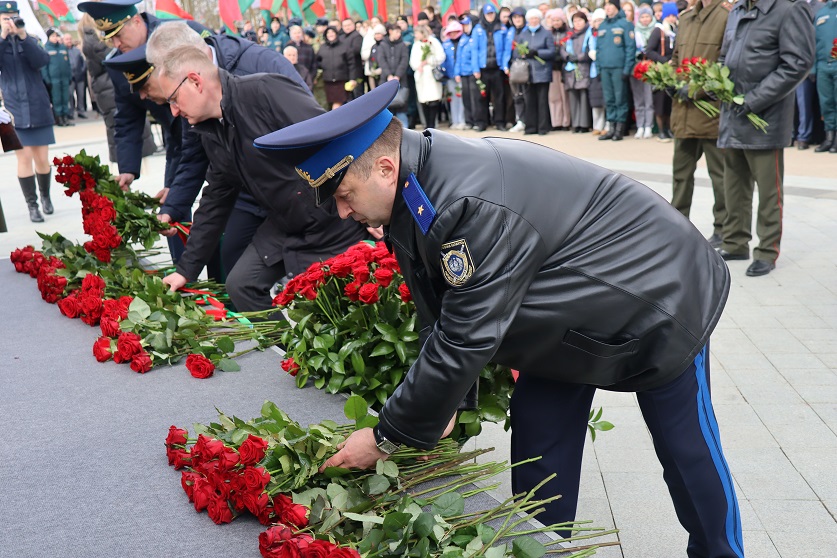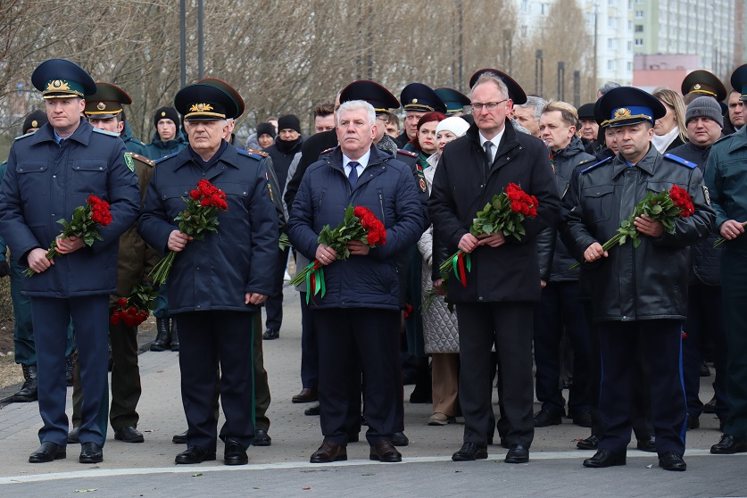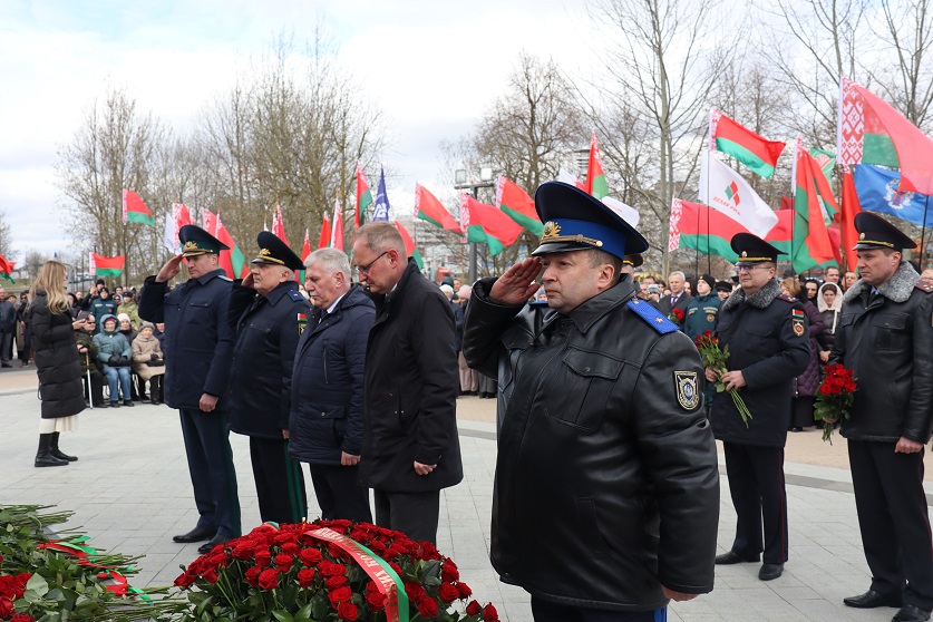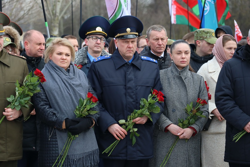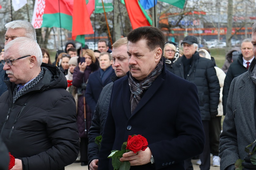 К церемонии возложения цветов к «Вратам памяти» присоединилось руководство Мингорисполкома, Мингорсовета, правоохранительных органов города Минска, а также представители столичного управления Следственного комитета во главе с начальником Евгением Архиреевым. Участники мероприятия почтили память жертв геноцида белорусского народа минутой молчания.