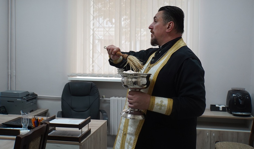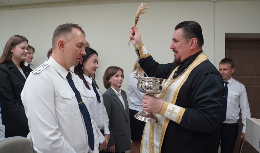 Духовную гармонию в этот день внес иерей Иоанн Ковалев, проведя обряд освящения здания и благословив сотрудников на достойное служение Отечеству.