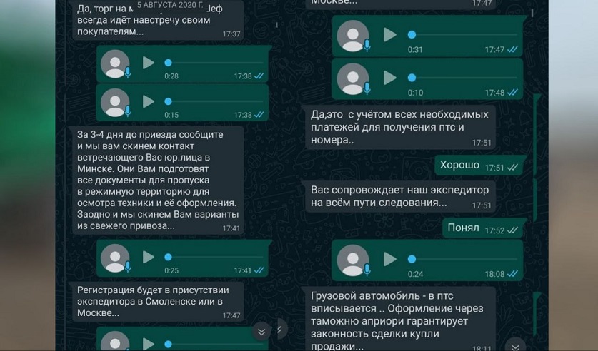 Однако на достигнутом группировка не остановилась. Для осмотра приобретаемого автомобиля покупателям предлагалось проехать в Ошмяны или Молодечно, где уже от других фигурантов они узнавали о том, что выбранный грузовик находится на территории Евросоюза. Затем новые условия – необходимо заключить договоры на оказание услуг по перегону грузовых автомобилей и прицепов, а также о передаче оставшейся суммы непосредственным продавцам техники.