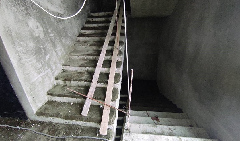 Стоит отметить, что свободный проход к месту исполнения поручения отсутствовал поскольку на этажах ниже устанавливалась стяжка пола. Рабочие, неся в руках 25-килограмовый мешок плиточного клея, были вынуждены идти в обход – через лестницу первого подъезда подняться на крышу. При спуске 52-летний облицовщик оступился, потерял равновесие и спиной упал на этаж ниже через неогороженный участок.