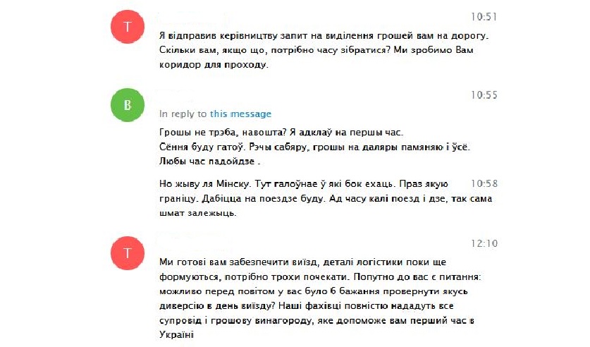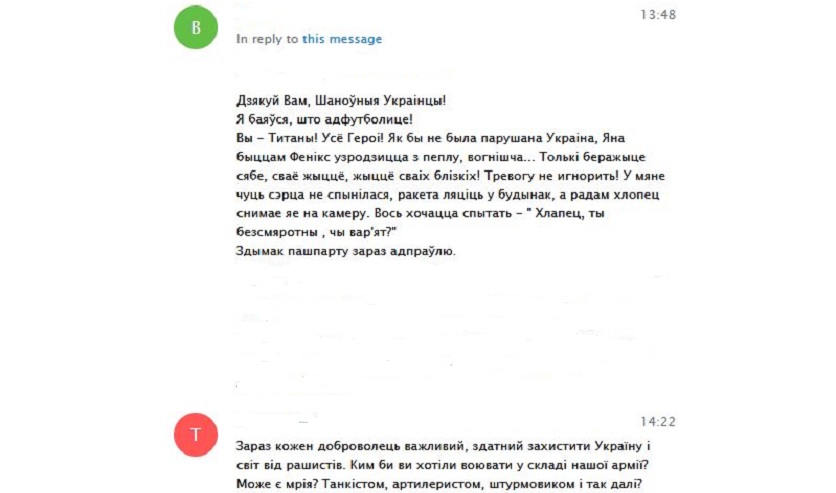 Мужчина написал в специализированный чат-бот в мессенджере Telegram. На первоначальном этапе переписки он сразу дал понять, что готов сотрудничать с украинскими спецслужбами для участия в вооруженном конфликте на стороне ВСУ. В ходе общения фигурант даже уточнял как получить гражданство сопредельной страны. Собеседник сообщил ему о готовности организовать выезд, однако поинтересовался у потенциального наемника готов ли он совершить диверсию в Беларуси ради будущей Родины.