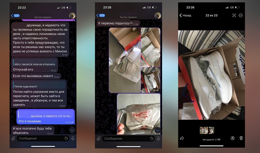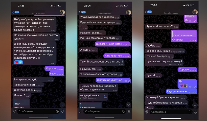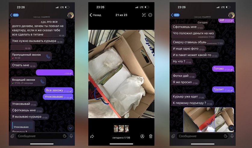 Тем не менее задание молодые люди решили закончить – они пересчитали деньги, сфотографировали их и отчитались куратору. Процент посыльные получили приличный, который, в прочем, быстро развеял все сомнения о незаконности подработки. Далее друзья запаковали оставшиеся деньги в коробку для обуви и передали ее курьеру службы доставки. После чего поехали тратить вознаграждение в торговый центр.