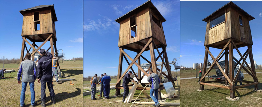 Сотрудники УСК поучаствовали в восстановлении макета поста охраны в «Тростенце», который поджег неизвестный злоумышленник
