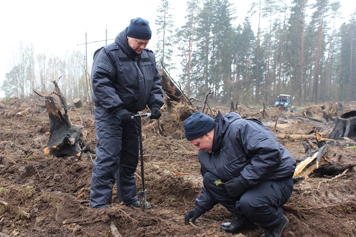 Во время субботника более 30 сотрудников УСК по г.Минску высаживали саженцы сосны на территории Боровлянского спецлесхоза, наиболее пострадавшего во время ураганных ветров летом текущего года.