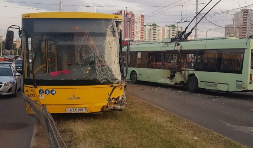 Как сообщалось ранее, вечером 7 июня 31-летняя водитель Geely двигалась по улице Кунцевщина в Минске. Поворачивая налево на перекресте улиц Притыцкого и Лобанка она не уступила дорогу пассажирскому автобусу, в результате чего произошло столкновение. От удара автобус, пробив металлическое ограждение, выехал на встречную полосу движения, где столкнулся с троллейбусом.