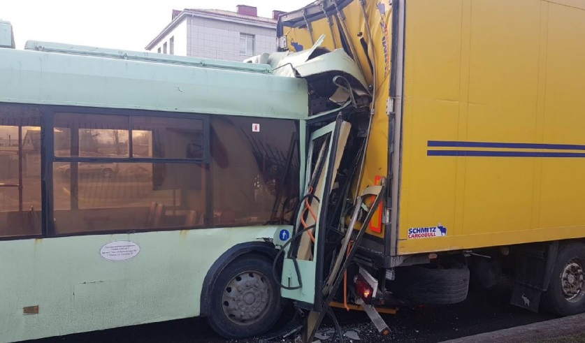 В Минске троллейбус врезался в фуру. Следователи работают на месте происшествия