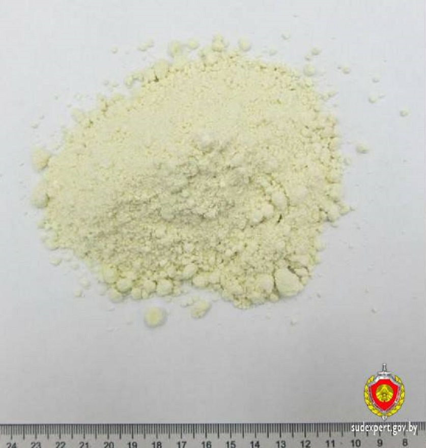 Изъятое вещество исследовалось в ГКСЭ. Согласно заключению экспертизы, одна часть содержит в своем составе aльфа-PVP, другая - мефедрон. Оба вещества являются особо опасными психотропными веществами, не используемыми в медицинских целях, и подлежат государственному контролю в Республике Беларусь.