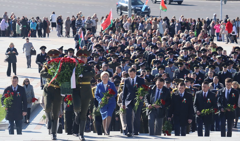 В торжественной церемонии возложения приняли участие руководство Мингорисполкома, председатель Мингорсовета Артем Цуран, руководители правоохранительных органов столицы, представители общественных организаций, политических партий и трудовых коллективов.