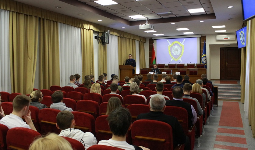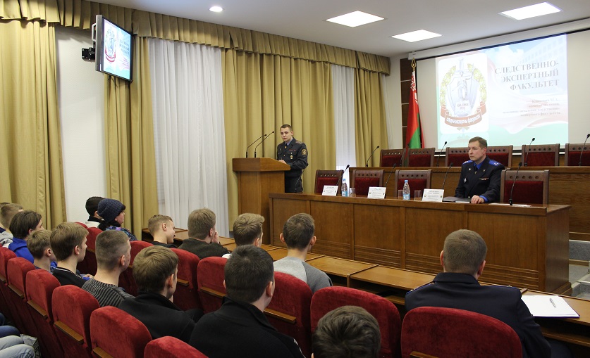 В приветственном слове начальник управления кадров и идеологической работы УСК по г. Минску Андрей Ляхнович рассказал об этапах отбора кандидатов, медкомиссии, служебной проверке, а также о социальной обеспеченности сотрудников и материальной базе ведомства. Акцентировалось внимание на морально-деловых качествах следователей и преимуществах, которые дает получение высшего образования в данном вузе.