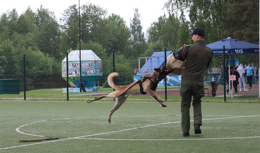 Особое внимание на развлекательном мероприятии привлекло представление кинологов и их четвероногих напарников. Участникам праздника продемонстрировали выполнение различных команд, подаваемых голосом и жестами. Затем специалисты перешли к более сложным упражнениям — служебные собаки показали навыки задержания и досмотра преступников. Работа кинологической службы вызвала живой интерес у детей, которые долго их не отпускали. Помимо этого, перед гостями выступили участники детского патриотического клуба «Гранит». Присутствие на семейном спортивном празднике УСК по Минску представителей других правоохранительных органов подчеркивает единство и сотрудничество между ведомствами.
