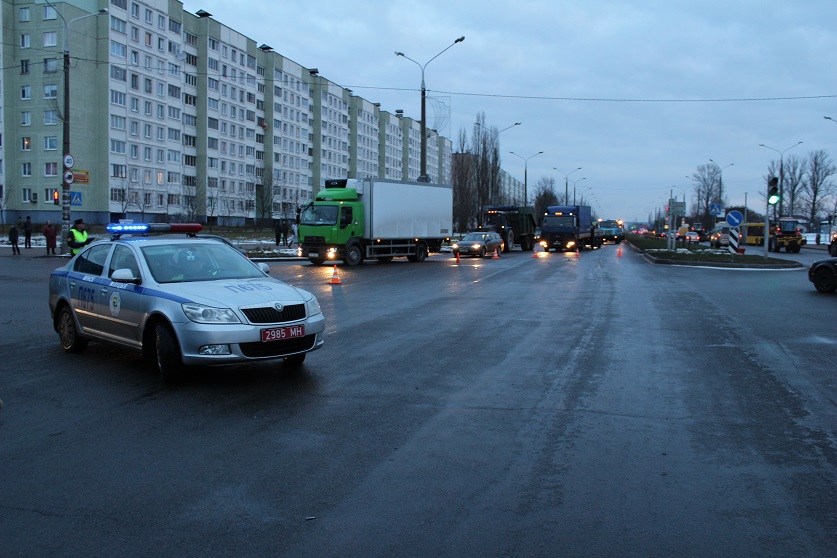 Следственно-оперативная группа работает на месте происшествия по факту ДТП, имевшего место 15 декабря 2017 года около 7 часов 40 минут на перекрестке улицы Селицкого с улицей Бачило в Минске.