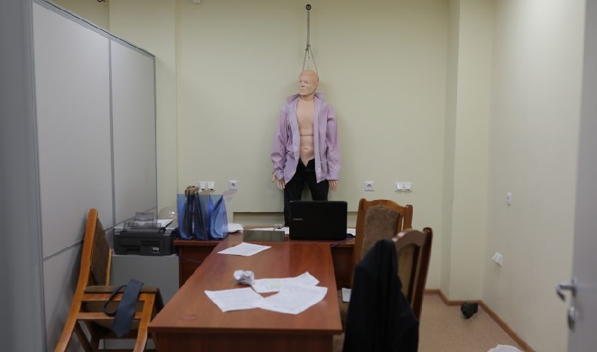 Осмотр тела закончился логичным выводом Оксаны: надетая наизнанку рубашка, отсутствие нижнего белья, спущенные и расстегнутые брюки выглядят слишком подозрительно для суицида. Далее следователь фиксирует положение тела, проводит фотофиксацию, делает контрольные точки для привязки к объектам. После этого тело вынимают из петли и продолжают осмотр.