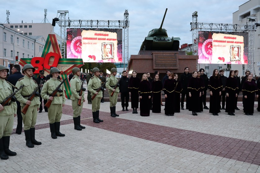 В День Победы офицеры вместе с горожанами-патриотами прошли по Советской улице в праздничном шествии, посвященном 80-й Победной весне. В первых рядах колонны – руководитель областного следствия. В едином порыве шагали по праздничной мостовой сотрудники Следственного комитета и гимназисты профильных классов. Конечная точка шествия – митинг возле главного мемориального комплекса города – Вечного огня на братской могиле советских воинов.