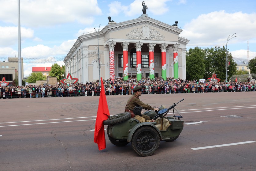 Ярким праздничным аккордом стал для жителей и гостей Гомеля парад военной техники на центральной площади города. Зрители восхищенно приветствовали парадные расчеты воинских подразделений, силовых структур и кадетских классов. Синхронно чеканили шаг сотрудники Следственного комитета, вызывая чувство гордости за современное поколение офицеров, перенявших славные традиции предков-победителей.