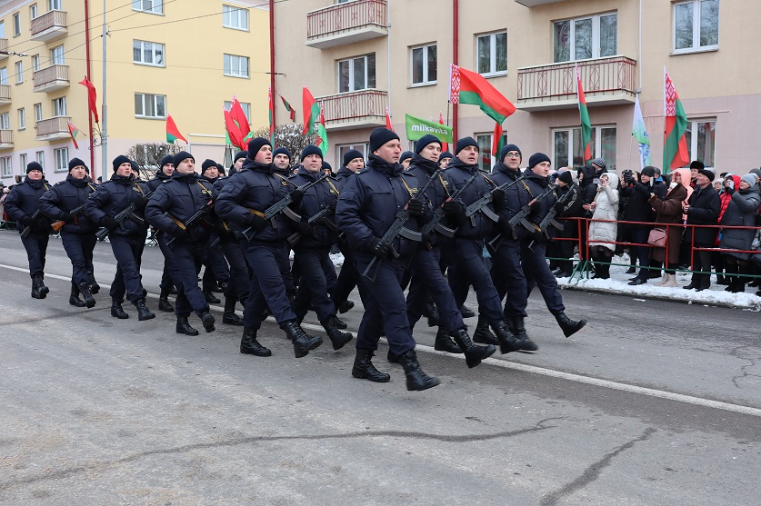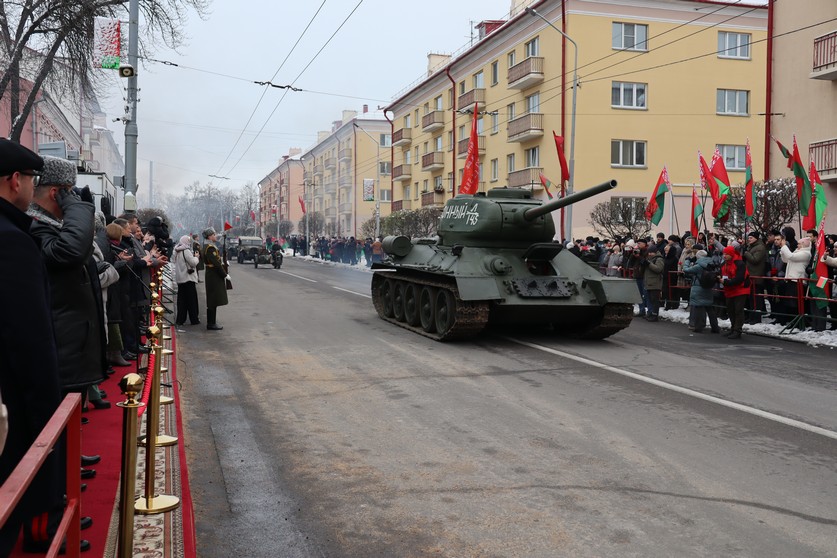 Особую значимость праздника создал парад военной техники и торжественный марш парадного расчета военнослужащих Гомельского гарнизона. Зрители с большим интересом рассматривали легендарный Т-34, «Катюшу», современные образцы вооружения. Свыше 500 человек чеканили шаг в колоне сотрудников военизированных структур. С гордостью по мирной мостовой шагали офицеры следственного ведомства.