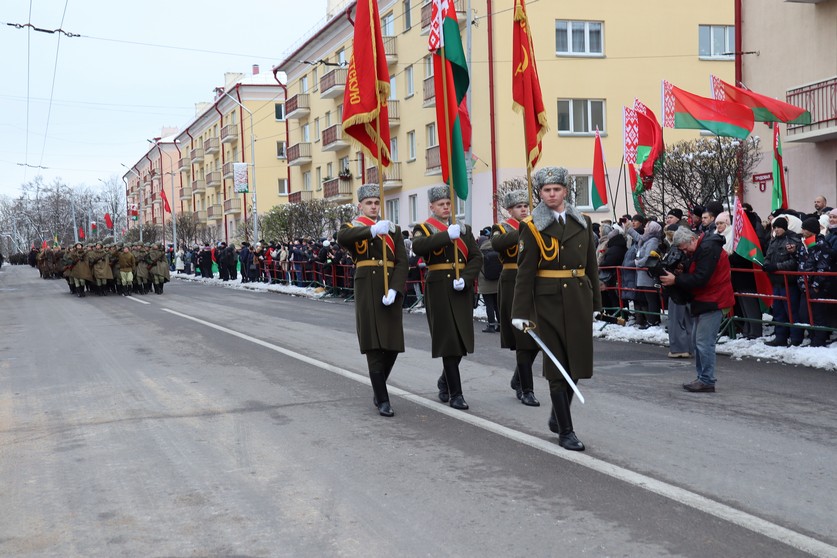 Накануне памятной даты офицеры вместе с представителями органов власти, трудовых коллективов, общественных организаций, учащейся молодежью вспомнили подвиг воинов Красной Армии, партизан и подпольщиков на митингах на Аллее Героев и площади Восстания. У памятного знака жертвам геноцида белорусского народа в годы Великой Отечественной войны скорбели о судьбах замученных земляков.