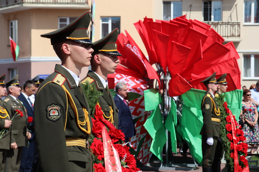 В преддверии праздничной даты офицеры отдали дань памяти воинам-освободителям на общегородском митинге возле мемориального комплекса «Аллея Героев». Представители органов власти, трудовых коллективов, общественных организаций, молодежь, гомельчане преклонного возраста вспомнили героические страницы освобождения Беларуси.