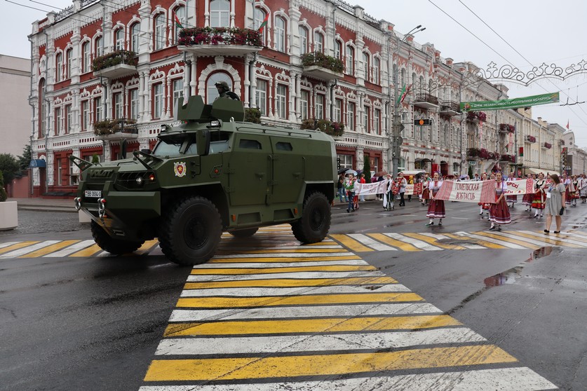 На главной площади Гомеля прошел парад белорусской сельскохозяйственной техники, общественного транспорта, отечественных автомобилей и мотоциклов. Во всех районах города развернулись тематические праздничные локации.