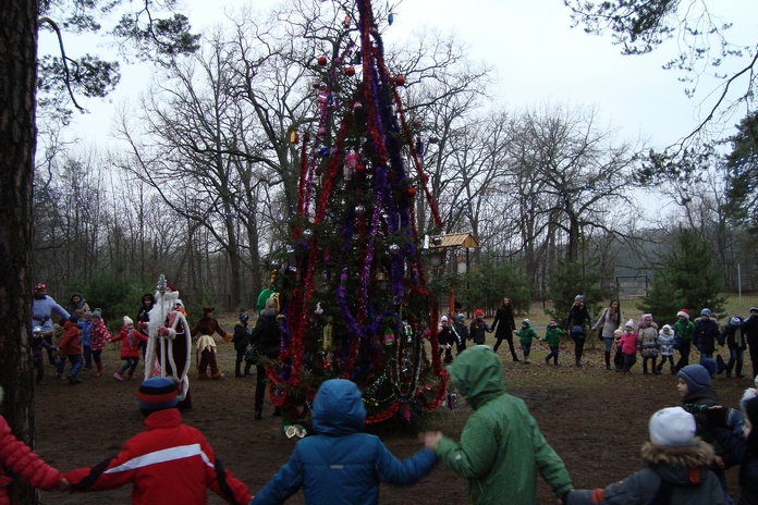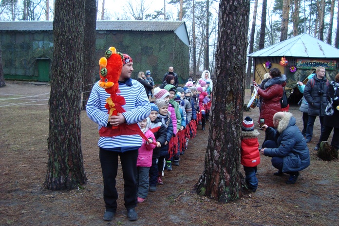 Приехав на место, путешественники окунулись в атмосферу новогоднего праздника. Маленьких посетителей встретили ростовые куклы в виде сказочных персонажей. В «волшебном» лесу не обошлось без происшествия – пираты похитили карту с месторасположением Деда Мороза и Снегурочки.