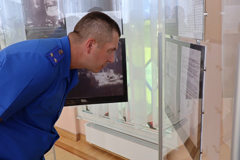 Начальник УСК по Гомельской области Максим Спринцин посетил официальное открытие выставки, прошедшее с участием председателя облисполкома Ивана Крупко и прокурора области Виктора Морозова. В последующем с исторической экспозицией ознакомились сотрудники областного следствия.