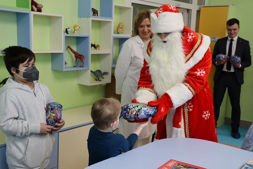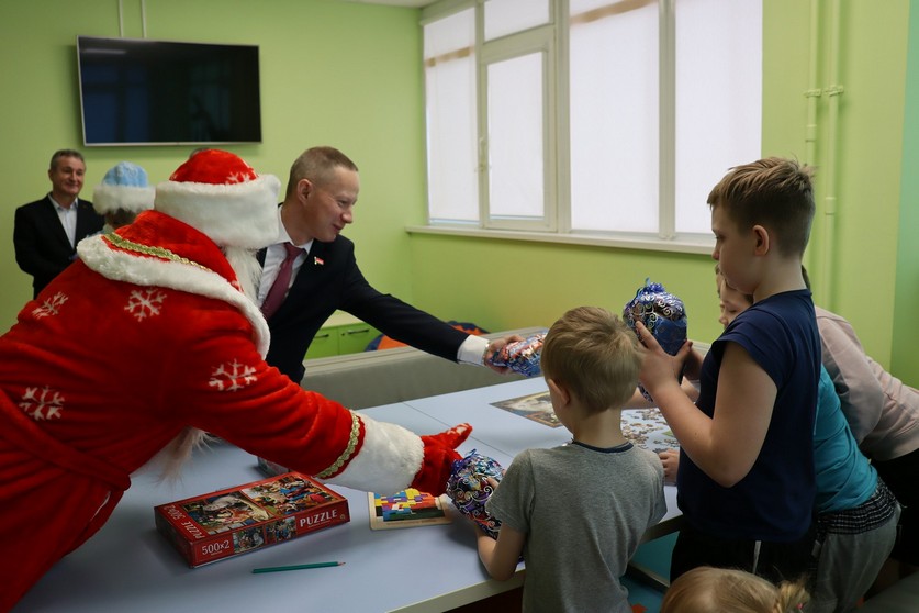 Начальник управления Следственного комитета по Гомельской области Максим Спринцин, председатель областного общественного объединения «Союз следователей» Владимир Бобков, сотрудники областного аппарата УСК и члены ветеранской организации поздравили ребят со Старым Новым годом и пожелали им скорейшего выздоровления. Вместе с Дедом Морозом и Снегурочкой, шубы которых на время одели сотрудники управления Николай Литовкин и Алёна Корзун, гости пообщались с каждым из ребят, что были свободны от лечебных процедур.