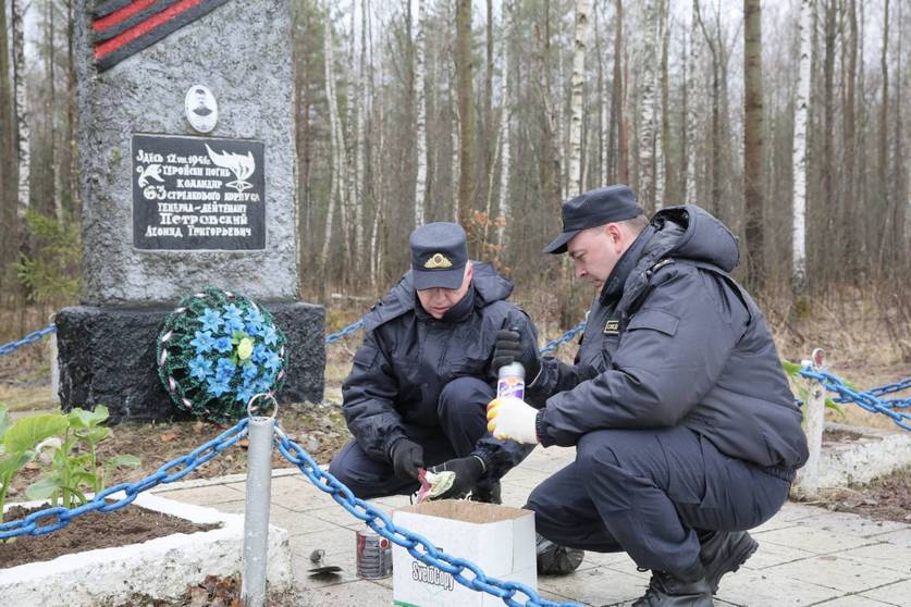 Трудовой десант руководства благоустроил территорию памятника командиру «черного корпуса», установленному между деревнями Руденка и Скепня. Активисты покрасили обелиск, бордюры, высадили цветы, убрали старую листву. После окончания работ посетили место захоронения генерал-лейтенанта Петровского – братскую могилу советских воинов в деревне Старая Рудня, и возложили венок от сотрудников Следственного комитета.