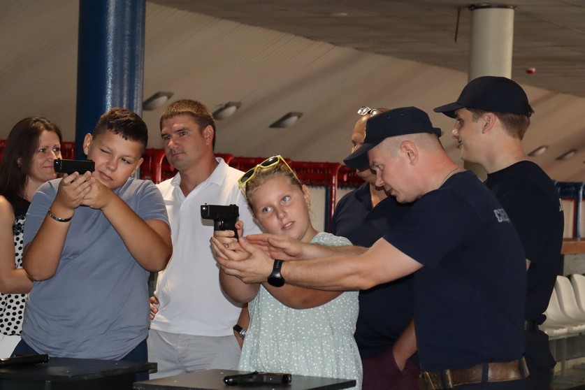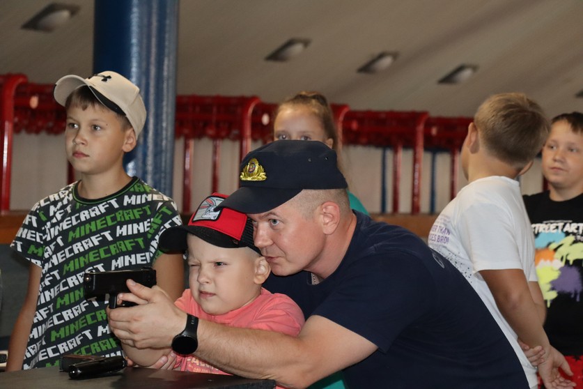 Еще одной точкой притяжения для школьников стала локация с интерактивным лазерным тиром УСК по Гомельской области. Мобильную тренировочную площадку доставили на время из административного здания управления. Подростки с восторгом опробовали стрельбище с различными трехмерными объектами.