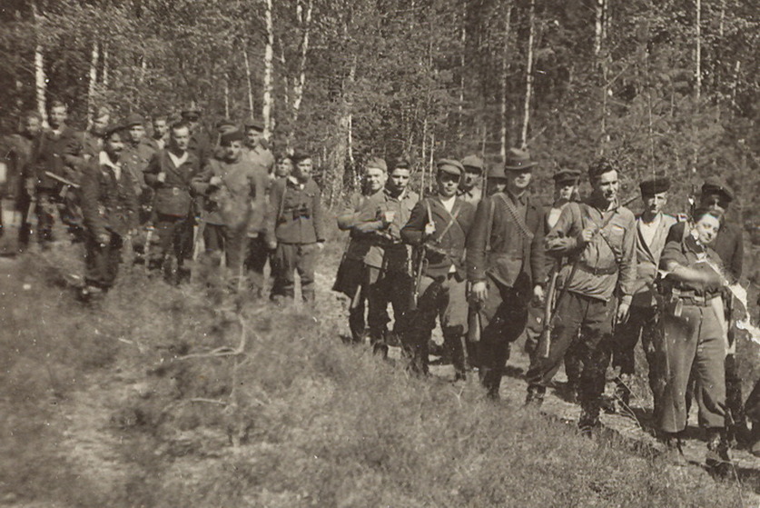 Дмитрий Удовиков ведет сводную группу партизан к месту дислокации на территорию Ивановского района, весна 1943 г.