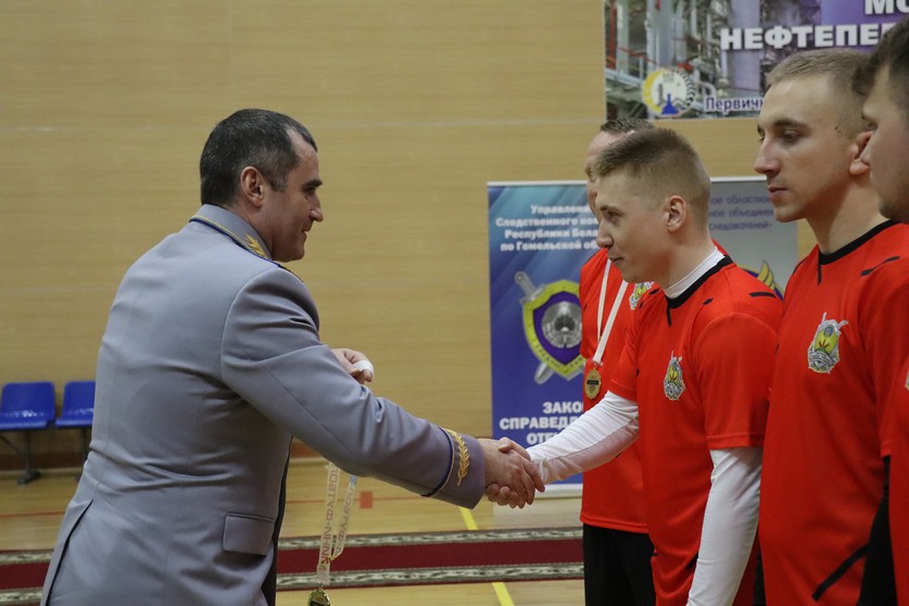 В Мозыре состоялся открытый международный турнир управления Следственного комитета по Гомельской области по мини-футболу, посвященный 78-летию Победы в Великой Отечественной войне. На игровой площадке физкультурно-оздоровительного центра «Полесье-Арена» встретились сотрудники центрального аппарата Следственного комитета, управлений по Витебской, Гомельской, Могилевской областям, УГКСЭ по Гомельской области, а также гости из страны-соседки – команда следственного управления Следственного комитета Российской Федерации по Брянской области.