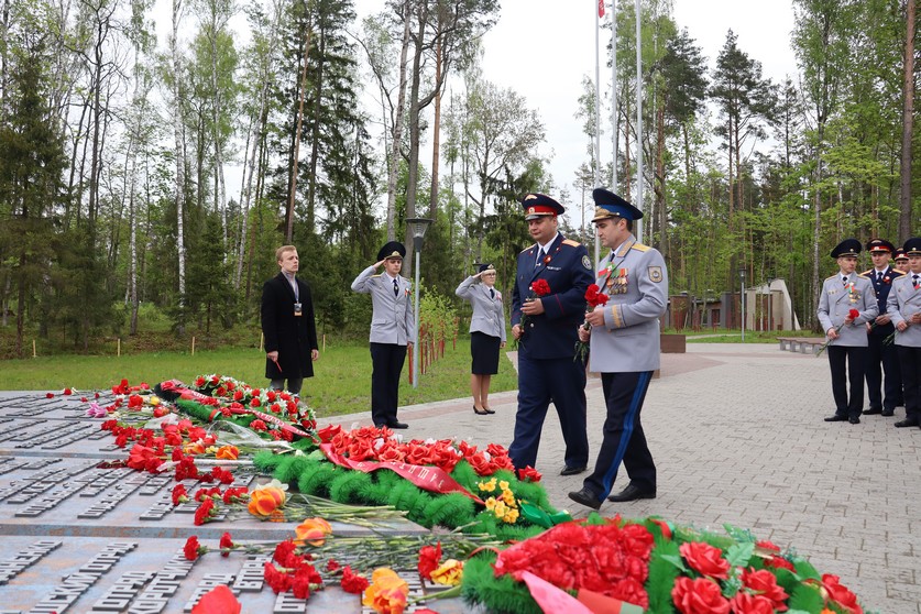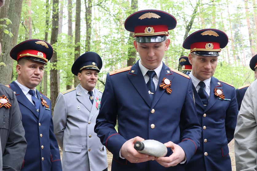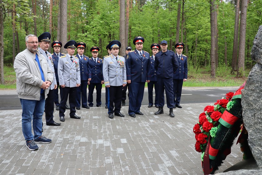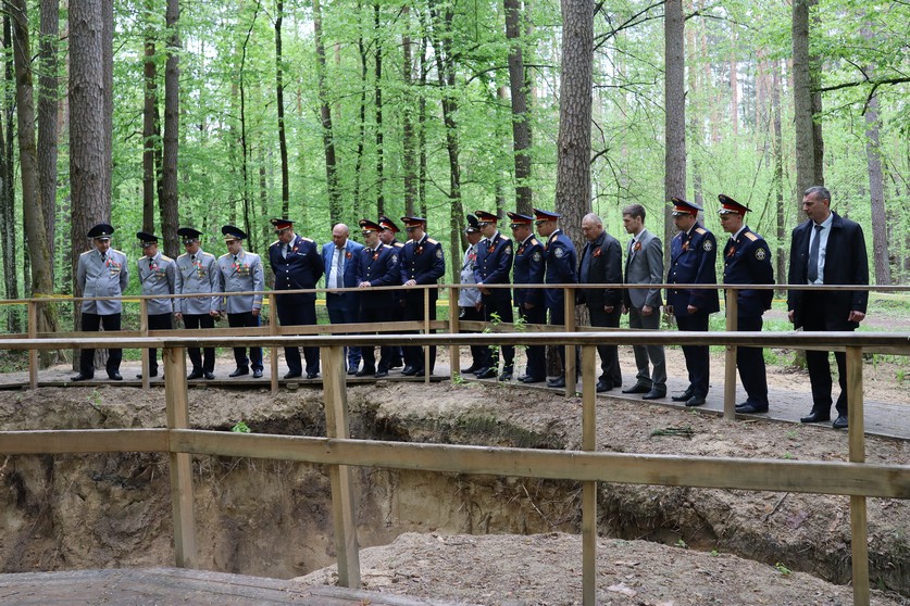 Офицеры посетили место перезахоронения останков жертв «фабрики смерти» и почтили память безвинно убиенных. Вместе с белорусскими коллегами возложили цветы к мемориальному комплексу «Партизанская криничка», возведенного на месте базирования гомельского партизанского отряда «Большевик».