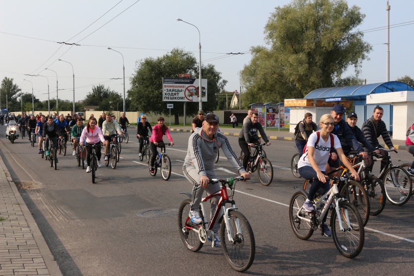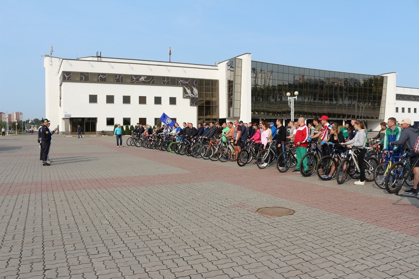 Любители здорового образа жизни стартовали возле Ледового дворца в Гомеле. Проехав 16 километров, велосипедисты прибыли в деревню Хальч Ветковского района.