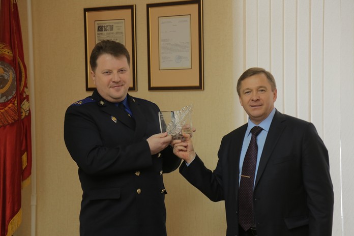 Начальник следственного управления УСК по Гомельской области полковник юстиции Дмитрий Данилин удостоился премии «За открытость в общении с прессой» областной газеты «Гомельская праўда». Именной хрустальный приз нетривиальному собеседнику вручил главный редактор старейшей газеты страны, член Совета Республики Национального собрания Республики Беларусь Сергей Беспалый.