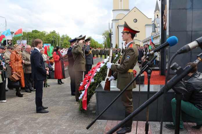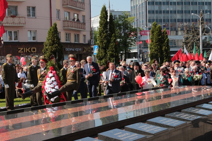 9 мая начальник управления Следственного комитета по Гомельской области Олег Шарков принял участие в городском праздничном шествии и торжественном митинге возле мемориального комплекса «Вечный огонь», где прошла церемония возложения венков и цветов к братской могиле советских воинов.