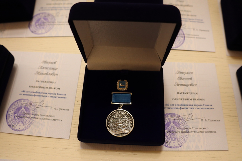 «Конец года – время отметить достижения тех, кто верой и правдой служит Отечеству. Совсем недавно гомельчане отпраздновали 80-летие освобождения города Гомеля от немецко-фашистских захватчиков – первого областного центра Беларуси. К памятной дате был разработан серебряный юбилейный знак с изображением первого вошедшего в город танка Т-34 – символа Великой Победы! И сегодня мне приятно вручить этот знак представителям управления Следственного комитета по Гомельской области. Вы продолжаете традиции мужества, служения Отчизне, заложенные нашими дедами и прадедами. Пусть юбилейный знак станет для каждого из вас памятным символом ратного подвига воинов-освободителей!», – подчеркнул Владимир Привалов.