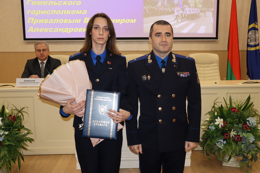 Председатель горисполкома Владимир Привалов поблагодарил сотрудников Следственного комитета за вклад в обеспечение законности, справедливости и правопорядка, вручил ряду офицеров юбилейный знак «80 лет освобождения Гомеля от немецко-фашистских захватчиков», поздравил с приближающимся Новым годом.