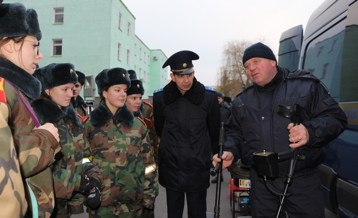 После посещения административного здания учащимся продемонстрировали возможности передвижной криминалистической лаборатории на базе автомобиля «Фольксваген Крафтер». Начальник отдела криминалистического и методического обеспечения управления Следственного комитета по Гомельской области полковник юстиции Николай Митрахович доходчиво рассказал кадетам об организации работы на местах происшествий по фактам совершения тяжких и особо тяжких преступлений. Учащиеся с большим интересом исследовали содержимое унифицированных криминалистических чемоданов, технические средства поиска следов преступлений.