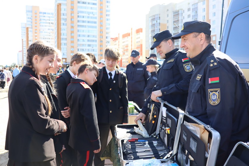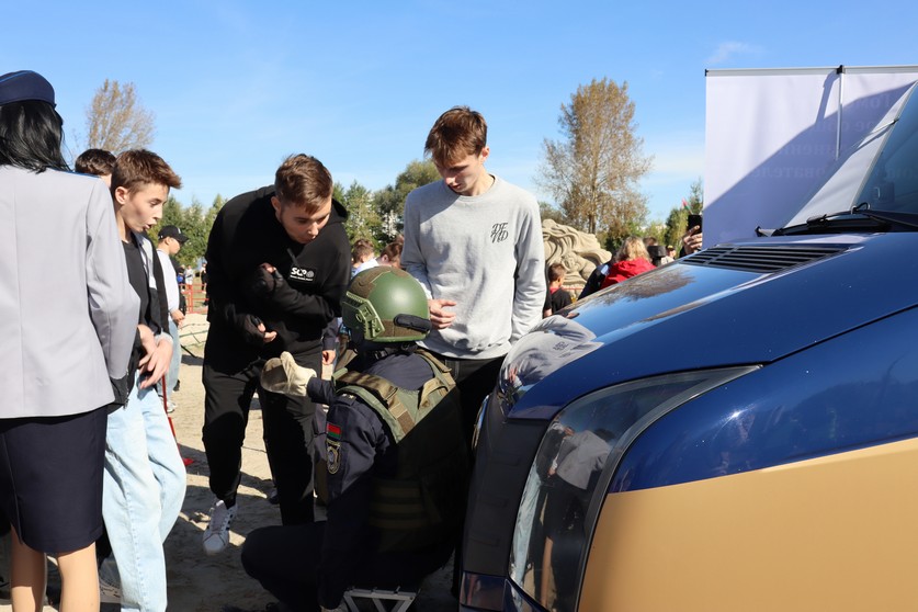 Особый интерес вызвала передвижная криминалистическая лаборатория и техническое оснащение белорусских следователей. Сотрудники криминалистического отдела с большим знанием дела объясняли гостям особенности работы на различных происшествиях, принцип работы переносного лабораторного комплекса для обнаружения биологических следов «Светоч-К», приводили примеры использования квадрокоптера и металлоискателя.