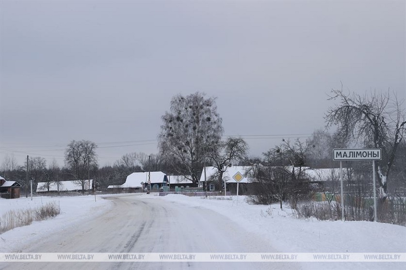 Первый пункт в инфомаршруте - деревня Малимоны. Один из первых домов встречает дымком из трубы. Хозяин Владимир Коваленко вышел во двор за добавочкой дров. С улыбкой встречает гостей, с благодарностью принимает новую информацию. Его супруга Екатерина Ивановна хлопочет по хозяйству и любезно приглашает в избу.