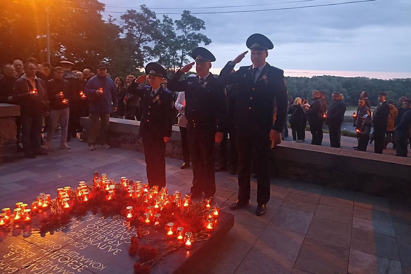 В четыре часа утра следователи присоединились к общегородской акции «Никто не забыт. Ничто не забыто». Представители органов власти, трудовых коллективов и молодежь встретили мирный рассвет у памятника гомельским ополченцам и подпольщикам. Знаковый объект установлен в память о бойцах народного ополчения, которые вместе с войсками Красной армии защищали Гомель от немецко-фашистских захватчиков. Под утренним небом прозвучали слова благодарных потомков о мире и жертвенном подвиге. В принесенных лампадках затеплились свечи о душах убиенных. Белые шары в форме голубей разнесли над мирным городом пожелания добра и счастья.